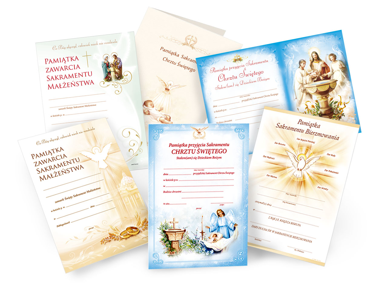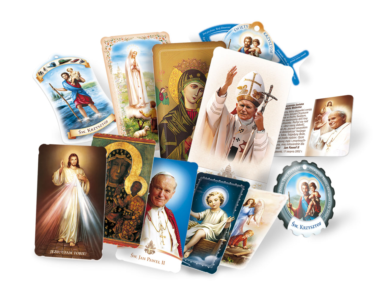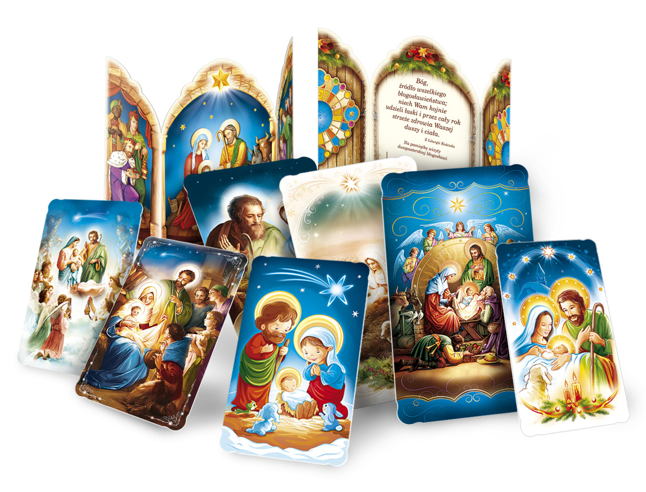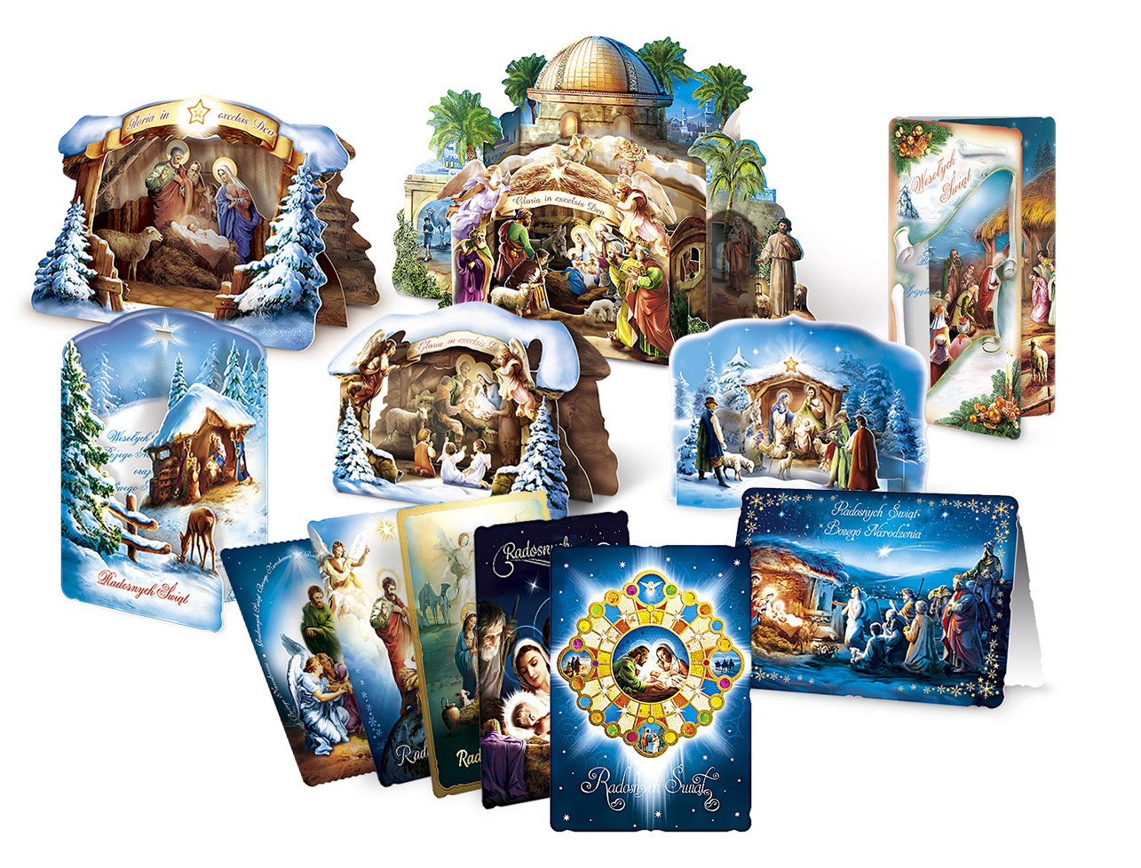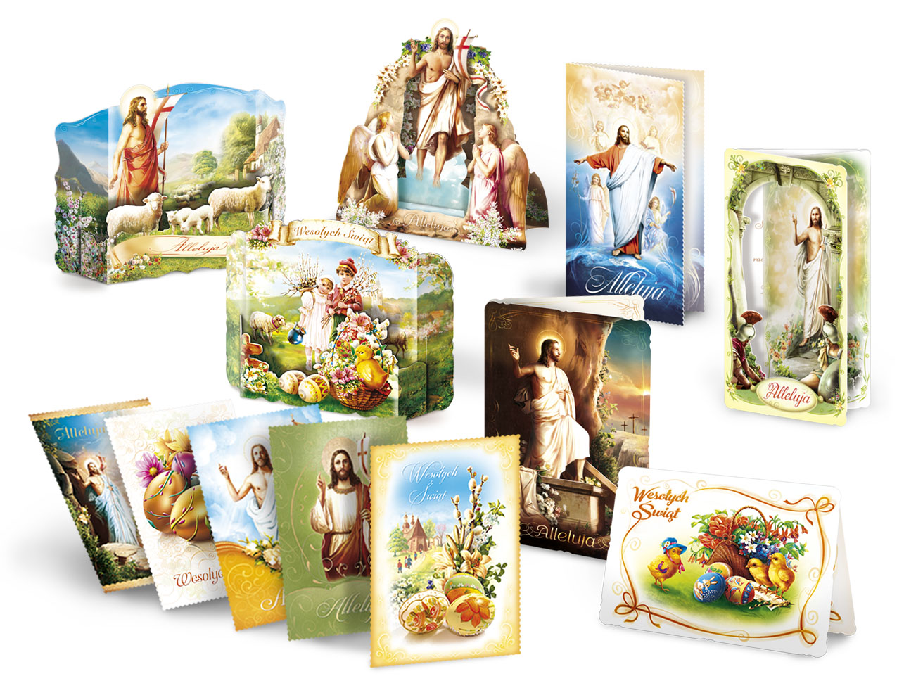 Posiadamy szeroki asortyment kartek i karnetów w różnych formach i kształtachzwiązany ze świętami Bożego Narodzeniem i Wielkanocy. W naszej ofercie posiadamy również obrazki z wizerunkami Świętych, obrazki kolędowe, dyplomiki i pamiątki sakramentów oraz obrazki okolicznościowe.